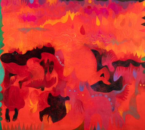 Červená krajina (čekání), 2025, olej na plátně, 130x145cm.